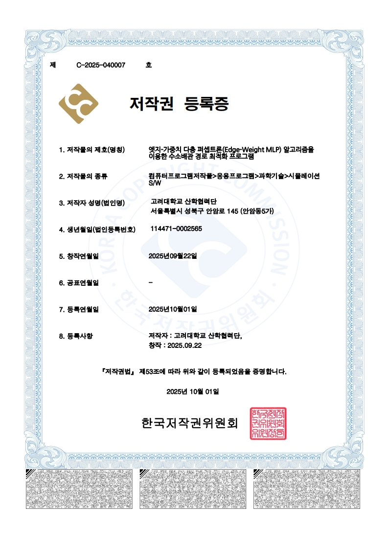 2023.04~2026.12 | 국토교통부 | 7 | 수소관망 입지 및 상호의존성 평가기술 개발 | 책임 |