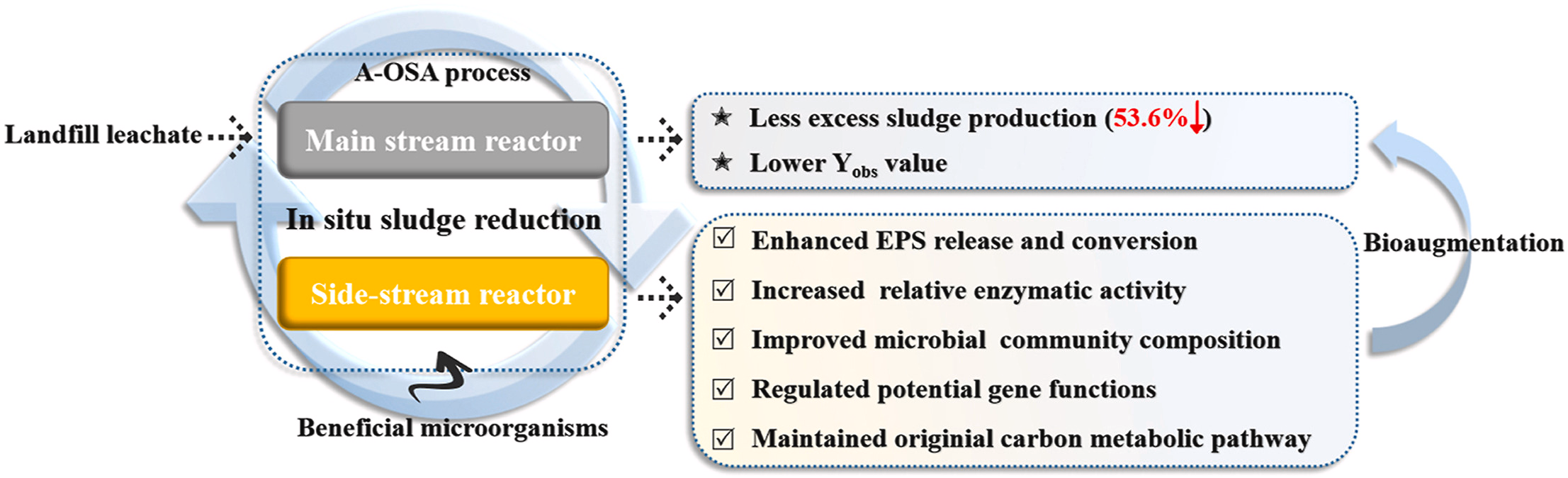 Contributions of enhanced endogenous microbial metabolism via inoculation with a novel microbial consortium into an anoxic side-stream reactor to in-situ sludge reduction for landfill leachate treatment