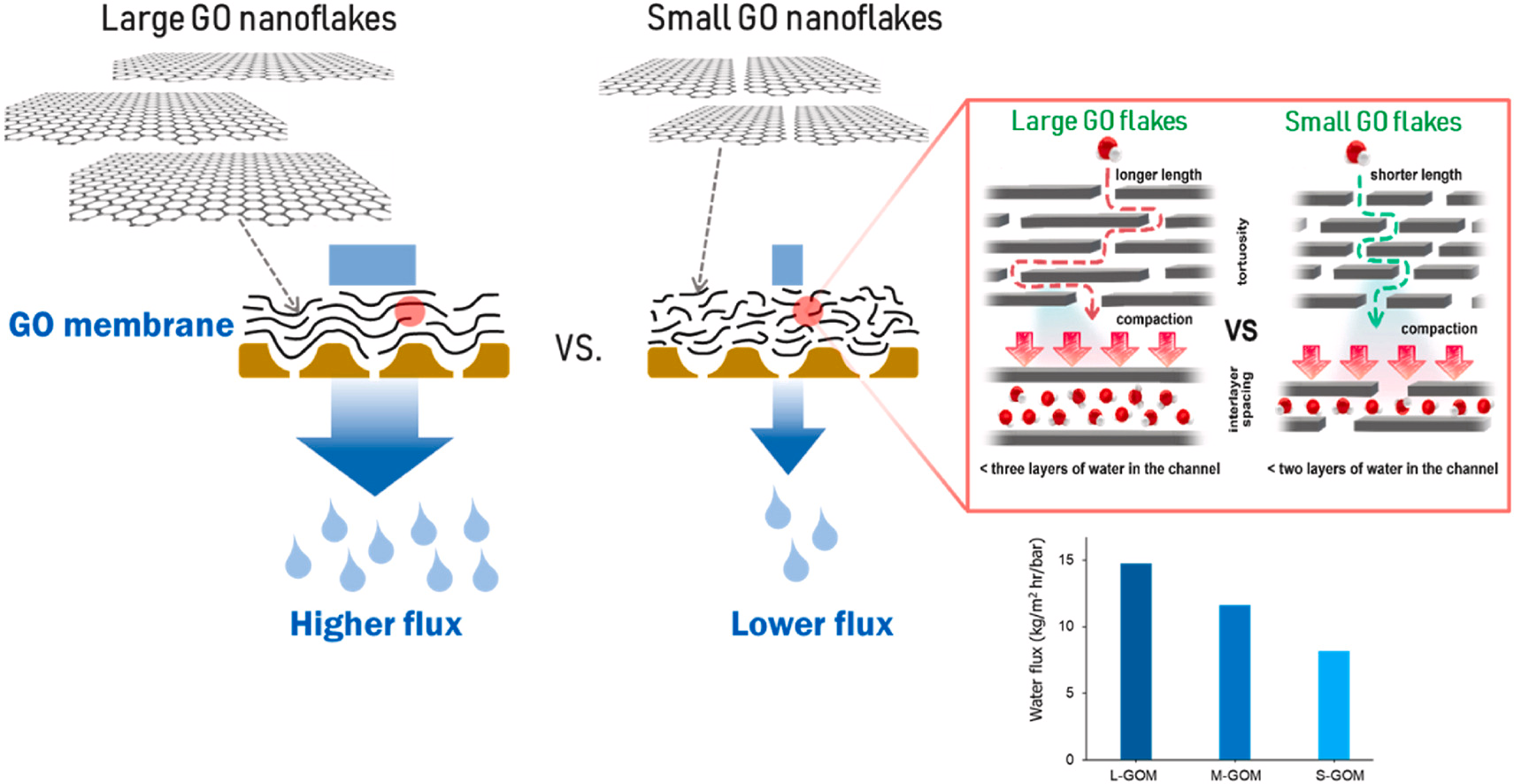 Size-dependent water transport in laminar graphene oxide membranes: An interplay between interlayer spacing versus tortuosity of transport pathway
