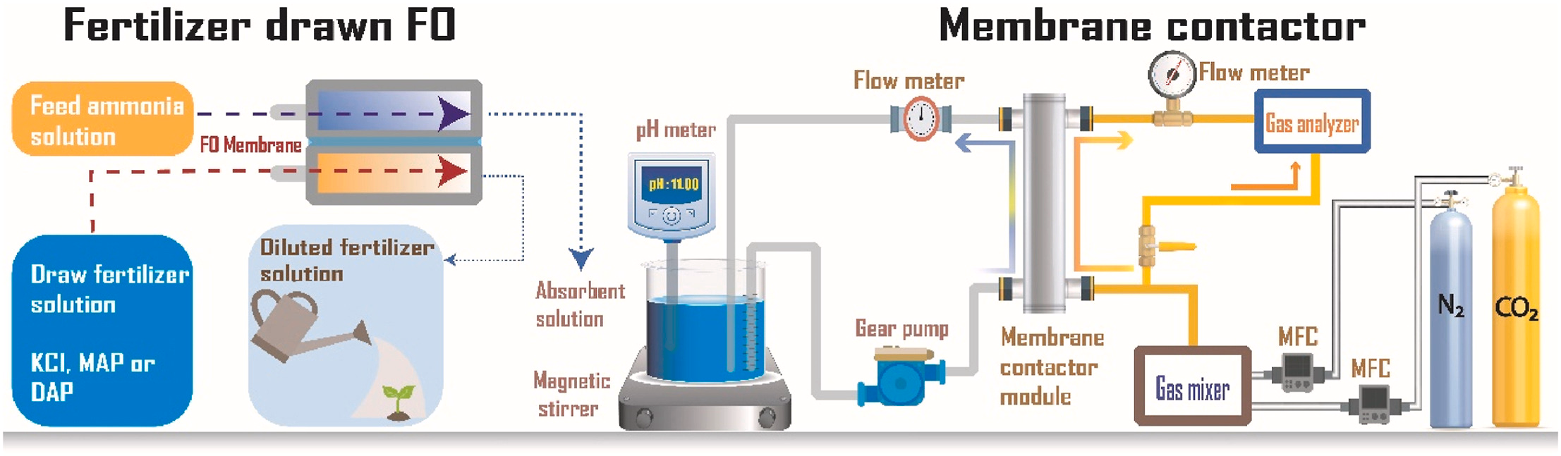 Evaluation of a novel fertilizer-drawn forward osmosis and membrane contactor hybrid system for CO2 capture using ammonia-rich wastewater